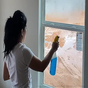 Thoroughly cleaning windows after project completion, which usually involves removing paint splatters, adhesive residue, dust, debris, and other construction remnants from the glass and window frames, essentially giving the windows a deep clean to restore their appearance after the construction phase is completed.